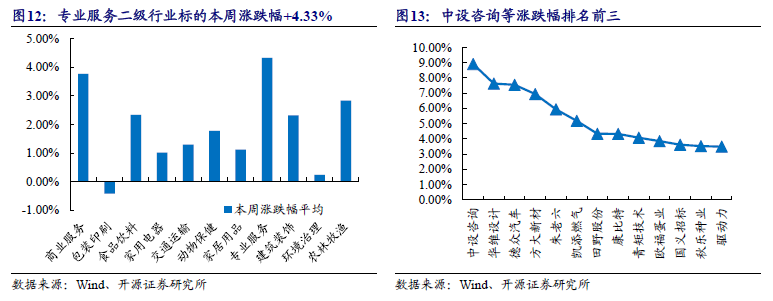 消费服务行业本周市盈率中值升至48.9X,中设咨询+8.92%、华维设计+7.63%、德众汽车+7.56%涨跌幅排名前三。(消费服务包含商业服务、包装印刷、食品饮料、家用电器、交通运输、动物保健、家居用品、专业服务、建筑装饰、环境治理、农林牧渔等二级行业)