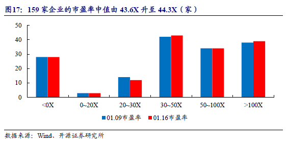2026年1月12日至2026年1月16日,159家企业的市盈率中值由43.6X升至44.3X。
