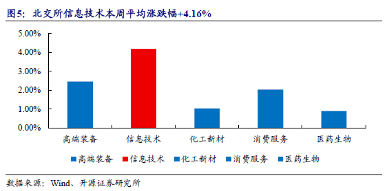 北证行业:信息技术本周平均涨跌幅+4.16%