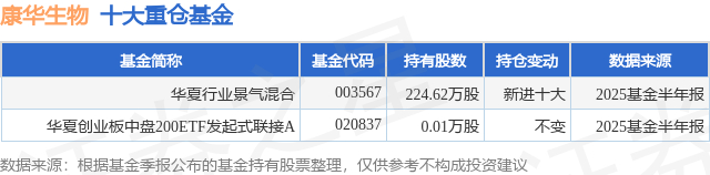 重仓康华生物的公募基金请见下表: