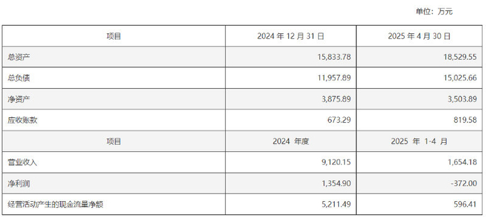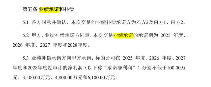 公告显示,今年1-4月,江苏晶凯净利润为亏损372万元。此外,2024年江苏晶凯净利润为1355万元,而江苏晶凯的业绩承诺显示,甲方承诺2025年江苏晶凯的净利润为不低于100万元,2026年、2027年、2028年,江苏晶凯的承诺净利润为3,500万元、4,800万元和6,100万元。