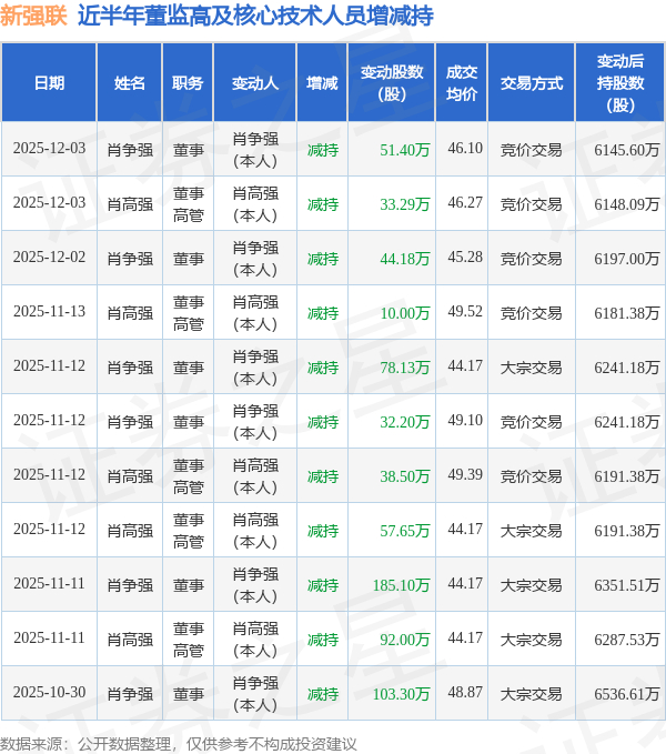 新强联:12月3日高管肖争强、肖高强减持股份合计84.69万股