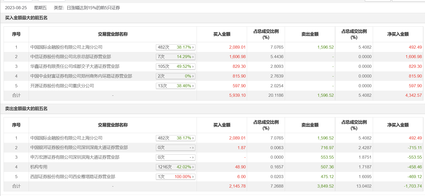 8月25日,中兰环保今日涨停,龙虎榜数据显示,上榜营业部席位全天成交9845.38万元,占当日总成交金额比例为33.35%。其中,买入金额为5995.86万元,卖出金额为3849.52万元,合计净买入2146.34万元。
