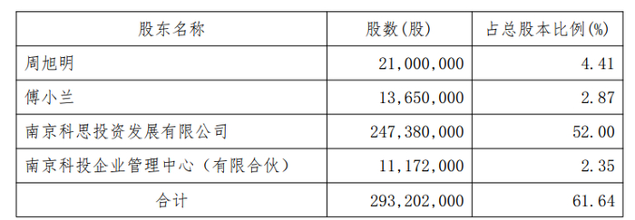 本次权益变动后,公司的实际控制人由周久京、周旭明变更为周旭明。本次权益变动后,实际控制人周旭明及其一致行动人傅小兰女士、南京科思投资发展有限公司、南京科投企业管理中心(有限合伙)合计控股61.64%。