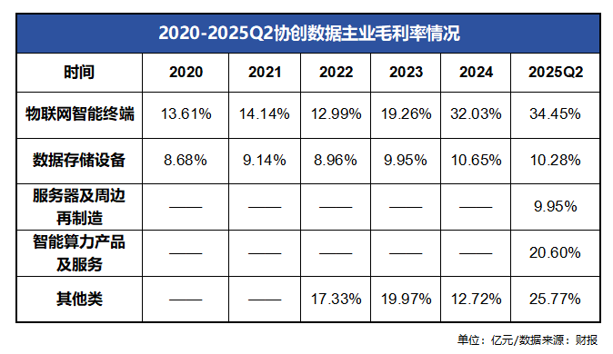 回顾之前提到的数据,智能算力产品及服务板块以24.7%的营收占比,成为协创数据业务的“第二增长曲线”。不过查看财报,截至2025年上半年,20.6%的毛利率低于物联网智能终端(34.45%)及其他(25.77%)两大板块。