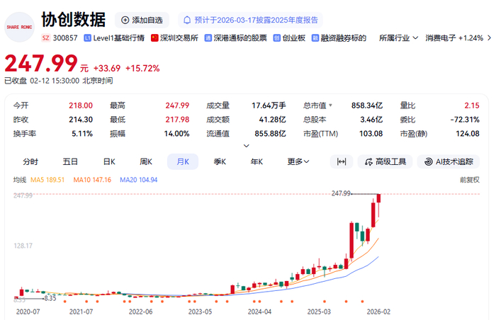 二级市场上,协创数据股价自2023年11月以来不断走高,已累计上涨约800%。