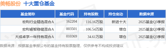 重仓美畅股份的公募基金请见下表: