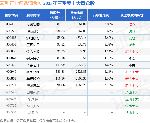 根据2025基金Q3季报公募基金重仓股数据,重仓该股的公募基金共3家,其中持有数量最多的公募基金为宏利基金的宏利行业精选混合A。宏利行业精选混合A目前规模为7.23亿元,最新净值8.6824(11月20日),较上一交易日下跌0.98%,近一年上涨24.77%。该公募基金现任基金经理为孟杰。孟杰在任的基金产品包括:宏利睿智稳健混合A,管理时间为2020年9月7日至今,期间收益率为87.15%;宏利睿智成长混合A,管理时间为2024年5月14日至今,期间收益率为47.72%;宏利价值驱动6个月持有混合A,管理时间为2024年11月27日至今,期间收益率为31.15%。