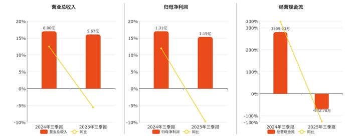 南大环境(300864.SZ):2025年三季报净利润为1.19亿元、同比较去年同期下降9.75%