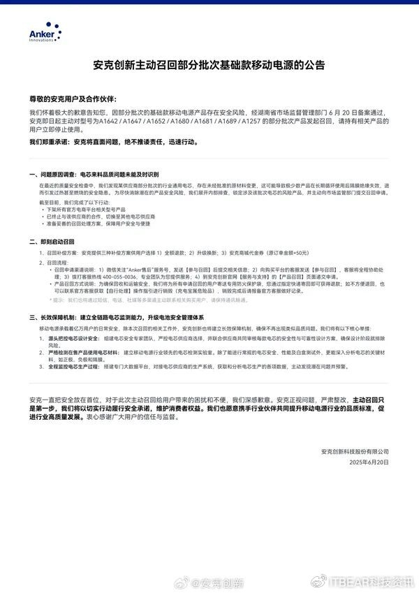 危机发生后,安克创新紧急启动全球化召回程序,在中国、美国、日本等多个核心市场同步开展大规模产品召回。