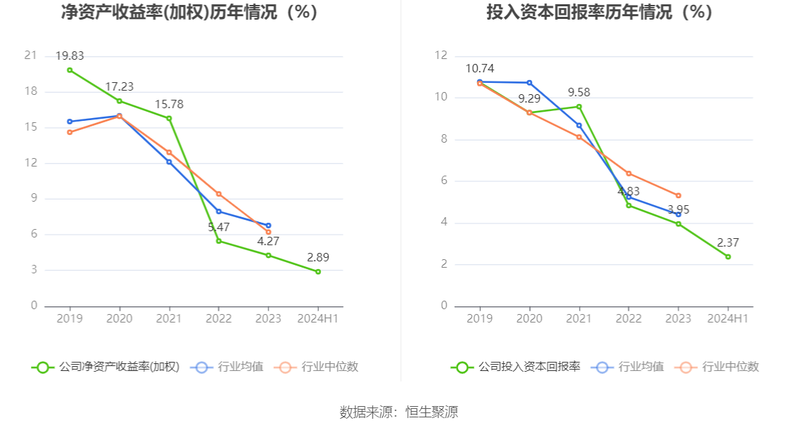 数据显示,2024年上半年公司加权平均净资产收益率为2.89%,较上年同期增长0.16个百分点;公司2024年上半年投入资本回报率为2.37%,较上年同期增长0.13个百分点。