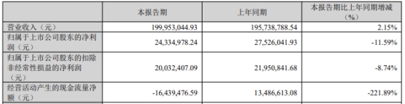 2024年第一季度,维康药业实现营业收入2.00亿元,同比增长2.15%;归属于上市公司股东的净利润2433.50万元,同比下降11.59%;归属于上市公司股东的扣除非经常性损益的净利润2003.24万元,同比下降8.74%;经营活动产生的现金流量净额为-1643.95万元,上年同期为1348.66万元。