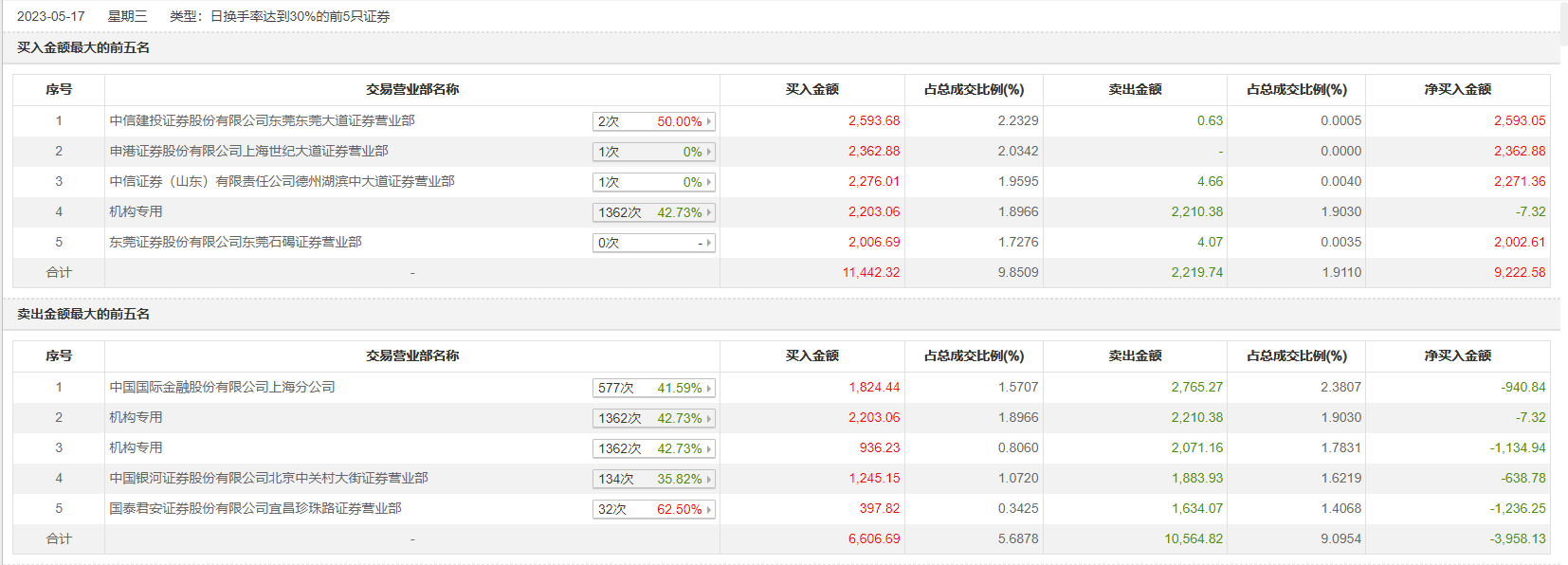 具体来看,机构买入3139.28万元,卖出4281.54万元,合计净卖出1142.26万元。此外,中信建投证券东莞东莞大道证券营业部、申港证券上海世纪大道证券营业部分别买入2593.68万元、2362.88万元;中国国际金融上海分公司、中国银河证券北京中关村大街证券营业部分别卖出2765.27万元、1883.93万元。