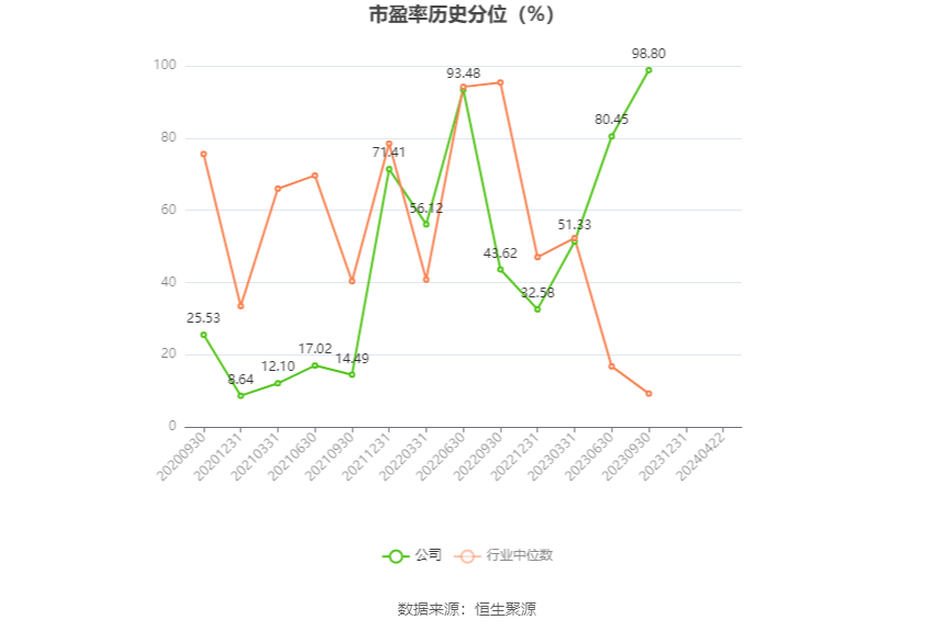 市盈率为负时,不显示当期分位数,会导致折线图中断。