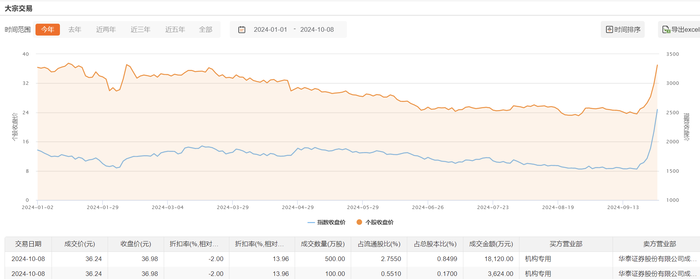 今日大宗交易成交600万股,成交额2.17亿元,占当日总成交额的22%,成交价36.24元,较市场收盘价折价2.0%。