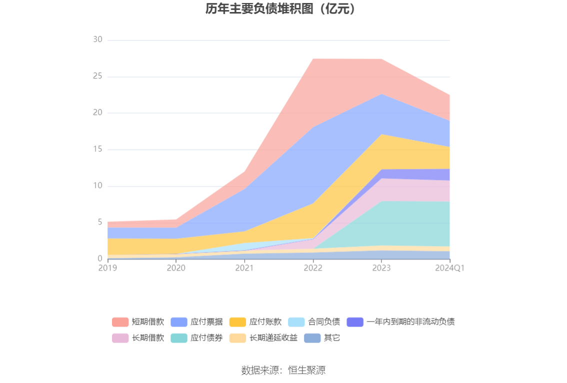 负债重大变化方面,截至2024年一季度末,公司应付票据较上年末减少35.35%,占公司总资产比重下降3.30个百分点;应付账款较上年末减少37.90%,占公司总资产比重下降3.14个百分点;短期借款较上年末减少26.19%,占公司总资产比重下降1.81个百分点;一年内到期的非流动负债较上年末增加29.23%,占公司总资产比重上升1.17个百分点。