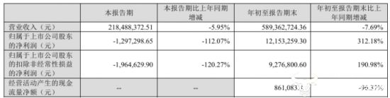 而第三季度公司营业收入2.18亿元,同比下降5.95%,而归母净利润亏损129.73万元,同比大幅下降112.07%,单季度再次出现亏损情况。