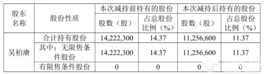 而在8月份,公司股东吴柏赓通过集中竞价交易、大宗交易方式减持公司股份合计296.57万股,减持均价为32.54元,共计套现约9650.39万元,持股比例下降至11.37%。