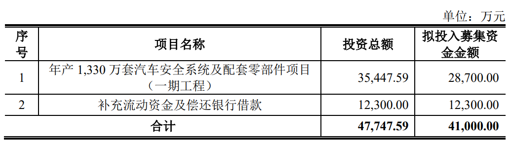 松原转债可转债发行规模4.1亿元,向原股东优先配售总计3.67亿元,占本次可转债发行总量的89.44%。松原转债本次募资主要用于年产1330万套汽车安全系统及配套零部件项目(一期工程)及补充流动资金及偿还银行借款。