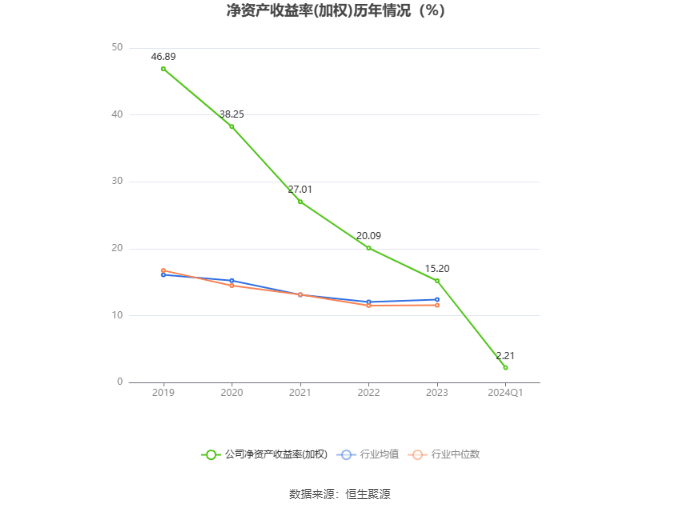 数据显示,2024年第一季度公司加权平均净资产收益率为2.21%,较上年同期下降0.71个百分点;公司2024年第一季度投入资本回报率为1.30%,较上年同期下降0.56个百分点。