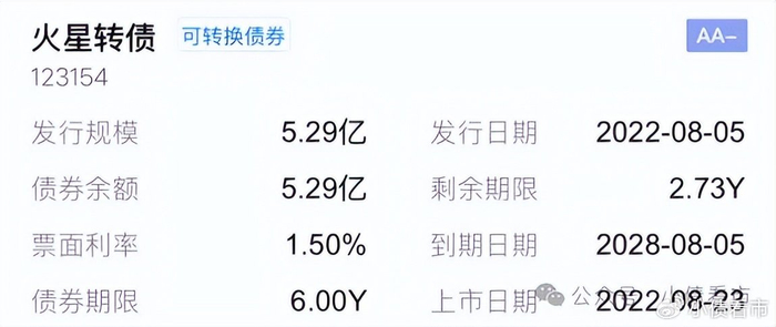 《小债看市》统计,目前火星人仅存续一只“火星转债”,债券余额5.29亿元。