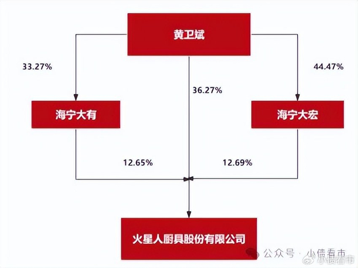 从股权结构看,火星人的控股股东及实际控制人为黄卫斌,他直接持有公司36.27%股份。
