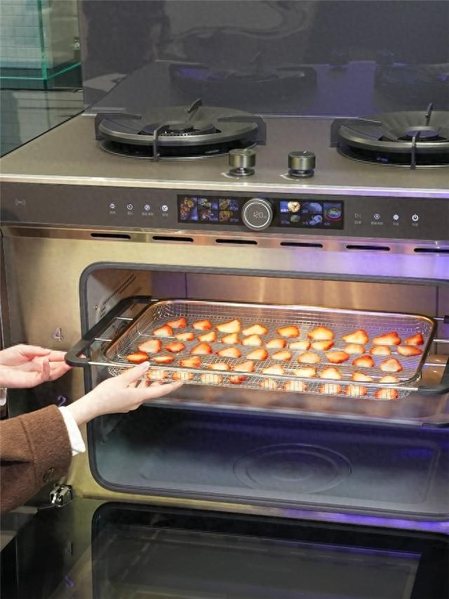同时,这台设备内置多种智能烹饪模式,例如“低嘌呤蒸汽炖”功能可控制温度与湿度,减少食材嘌呤含量的同时锁住营养,适合健康饮食需求。“趣味果干烤模式”能将水果转化为自然香甜的脆片,让家庭餐桌充满创意小惊喜。这种灵活的功能组合,让火星人集成灶不仅满足中式家常菜的高温爆炒,也能胜任西式烘焙的精细需求,真正实现“美食灵感不设限”。