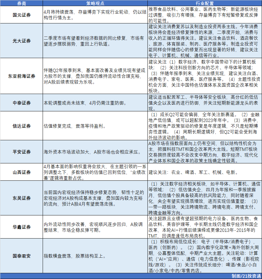 据不完全统计,目前已有30余家券商发布了2023年4月投资组合和最新市场观点。