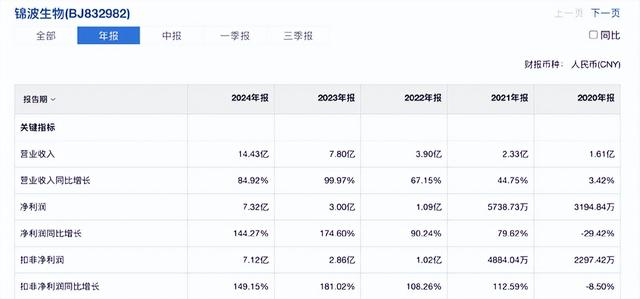 看看锦波生物的历史业绩不难发现,它是从2021年开始起飞的,2021以前虽然时不时也有一些增长,但和2021以后相比完全就是两家企业。