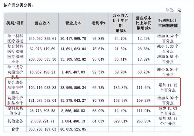 2025H1,锦波生物的复合功能性护肤品、功能性肤护品分别实现营收1.02亿、1.21亿,分别同比增长182.85%、152.39%。