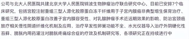 公司当下研发管线的核心产品基本还是围绕重组胶原蛋白,一方面会持续深化对重组三型人源化胶原蛋白的应用开发,从临床角度探索皮肤科、妇科、泌尿科、骨科、心血管科等不同场景的相关应用。