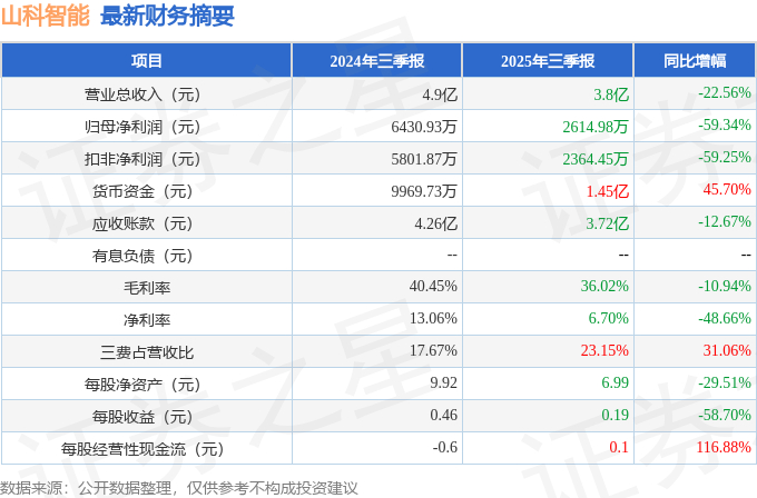 山科智能(300897)2025年三季报简析:净利润同比下降59.34%,公司应收账款体量较大