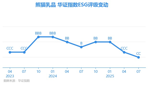 日前,华证指数公布了新一期(2025年7月31日)的ESG评级结果,熊猫乳品(300898.SZ)获得CC评级(华证指数评级为C起至AAA九档,C为最低档,AAA为其最高一级评级/AA为其第二档),上一期(2025年4月30日)ESG评级为CCC。本期ESG评级在156家食品行业A股上市公司中排名第91(上一期排名第72)。
