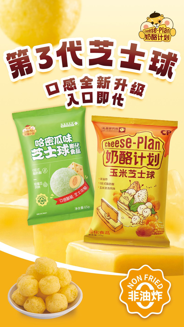 找到适合的原料对产品研发固然重要,但同时也带来了新的难题。据丁向阳介绍,公司目前采用的这款丹麦产原制奶酪的产量较低、售价较高,在一包膨化食品售价只有三到五块的情况下,必然对成本控制一环产生影响。“所以我们在中和奶酪发酵味道方面进行了更加多元化的尝试,也在近期研发推出了水果奶酪这一新品。我们在产品中加入新鲜水果,因为水果本身有酸甜的口味,可以很好地中和奶酪的酸味,两者结合的产品也具备更突出的健康属性。”