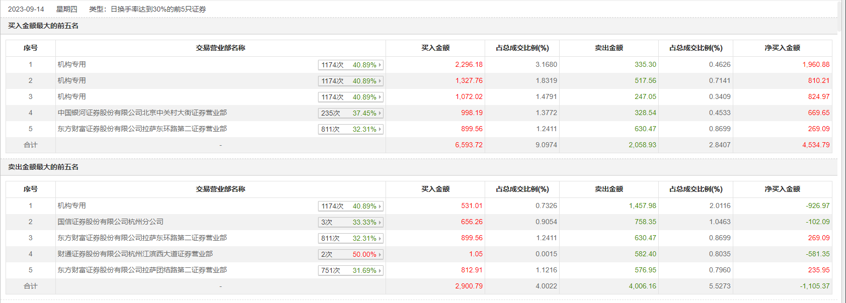 具体来看,机构买入5226.97万元,卖出2557.89万元,合计净买入2669.08万元。此外,国信证券杭州分公司、东方财富证券拉萨东环路第二证券营业部分别卖出758.35万元、630.47万元;中国银河证券北京中关村大街证券营业部、东方财富证券拉萨东环路第二证券营业部分别买入998.19万元、899.56万元。