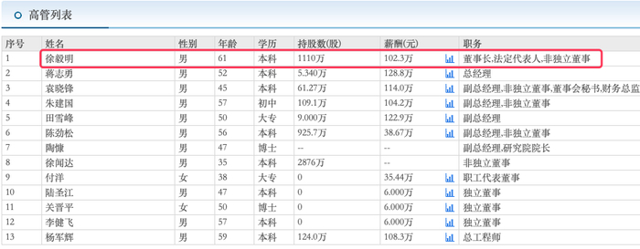 董事长徐毅明,今年61岁,早年曾任苏州江南丝厂化纤车间技术员、无锡长虹化塑色粒厂技术科科长、吴县市康达纤维母粒厂厂长、苏州市康达纤维母粒厂厂长。2002年12月至2018年5月历任宝力塑胶董事长兼总经理、执行董事兼经理;2008年5月至今任宝丽迪(宿迁)材料科技有限公司监事;2017年8月至今任铕利合盛执行事务合伙人;2018年5月至今任宝丽迪董事长。