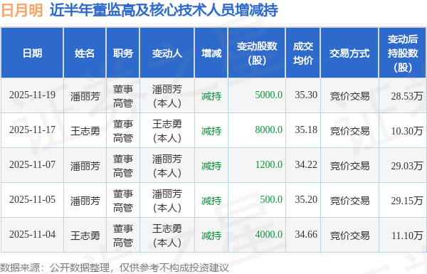 日月明:11月19日高管潘丽芳减持股份合计5000股