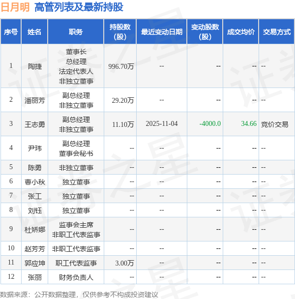 日月明近半年内的董监高及核心技术人员增减持详情如下:
