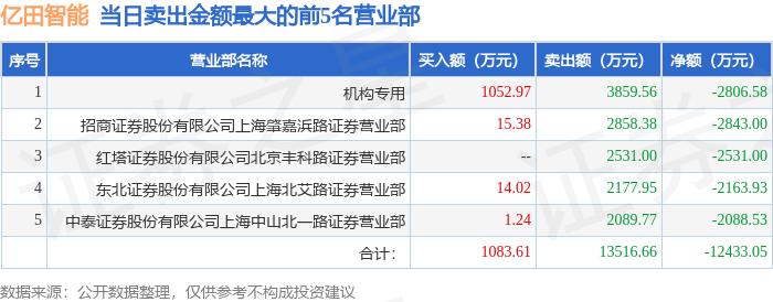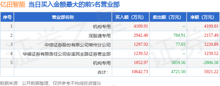 10月20日亿田智能(300911)龙虎榜数据:机构净买入1303.33万元,北向资金净买入2157.49万元