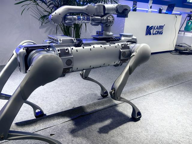 在博览会上,惠灵嘉系列多足机器人轻松进行跑跳、空翻等动作展示。工作人员向记者表示,惠灵嘉系列多足机器人定位为“复杂地形下的运输与巡检专家”,其凭借行业前沿的载重比性能,能在恶劣与非结构化环境中展现出强大的适应性与可靠性。