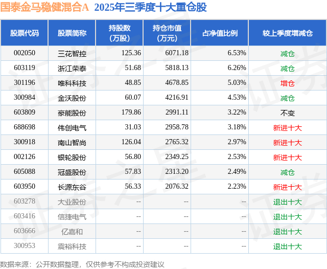 根据2025基金Q3季报公募基金重仓股数据,重仓该股的公募基金共3家,其中持有数量最多的公募基金为国泰基金的国泰金马稳健混合A。国泰金马稳健混合A目前规模为9.14亿元,最新净值1.2581(1月13日),较上一交易日下跌1.37%,近一年上涨57.9%。该公募基金现任基金经理为谢泓材。