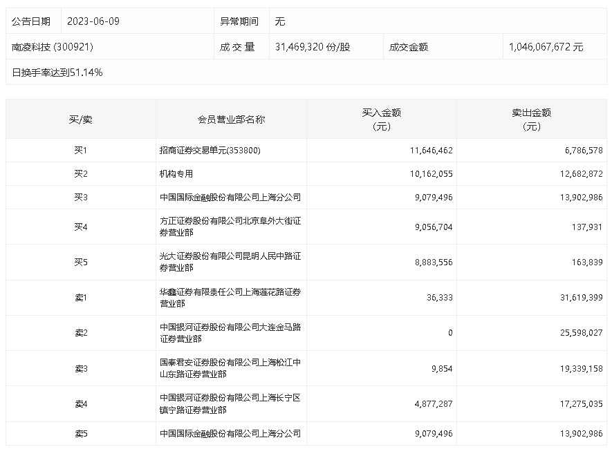 6月9日,南凌科技今日跌7.06%,龙虎榜数据显示,上榜营业部席位全天成交1.81亿元,占当日总成交金额比例为17.33%。其中,买入金额为5375.17万元,卖出金额为1.28亿元,合计净卖出7375.41万元。