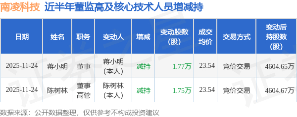 南凌科技:11月24日高管陈树林、蒋小明减持股份合计3.52万股