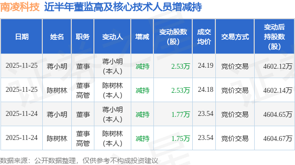 南凌科技:11月25日高管陈树林、蒋小明减持股份合计5.06万股