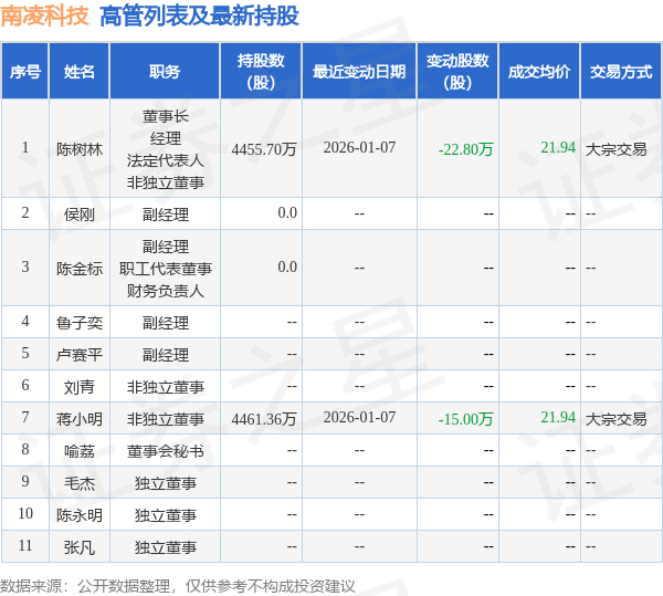 南凌科技的高管列表及最新持股情况如下:
