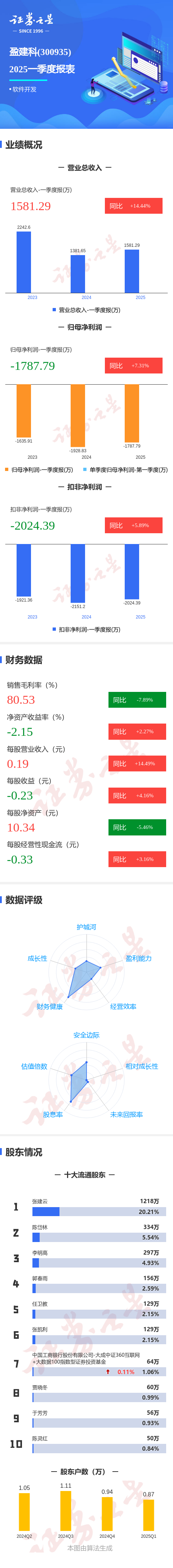 图解盈建科一季报:第一季度单季净利润同比增7.31%