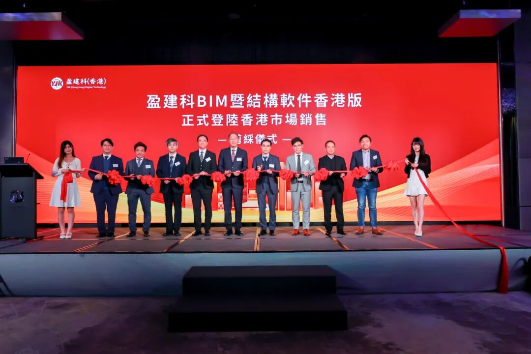 发布会核心环节,香港发展局代表邓启恩、香港建造业议会代表何烱光、盈建科代表陈岱林、李保盛、王贤磊、誉锋顾问代表黄世财、黄春权、建盛(亚洲)工程代表卢德辉及测建行代表余颂昇共同上台剪彩,正式宣布盈建科BIM及结构软件香港版重磅发布,为香港建造业数字化转型与多元化发展注入新动能。