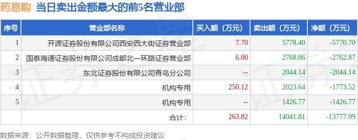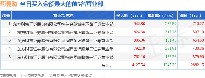 11月13日药易购(300937)龙虎榜数据:机构净卖出3200.29万元