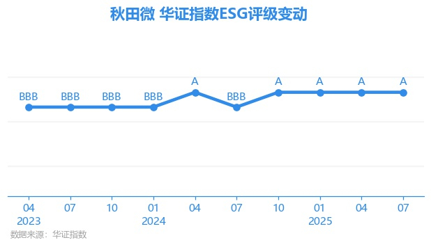 【ESG动态】秋田微(300939.SZ)获华证指数ESG最新评级A,行业排名第43