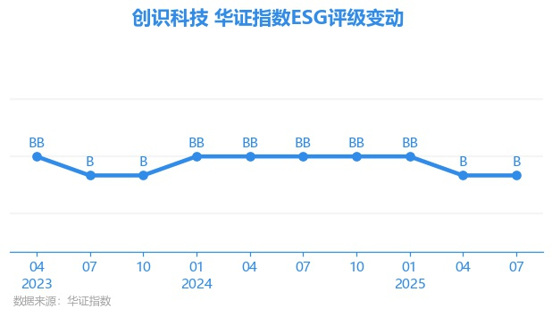 日前,华证指数公布了新一期(2025年7月31日)的ESG评级结果,创识科技(300941.SZ)获得B评级(华证指数评级为C起至AAA九档,C为最低档,AAA为其最高一级评级/AA为其第二档),上一期(2025年4月30日)ESG评级为B。本期ESG评级在529家电子设备、仪器和元件行业A股上市公司中排名第340(上一期排名第81)。